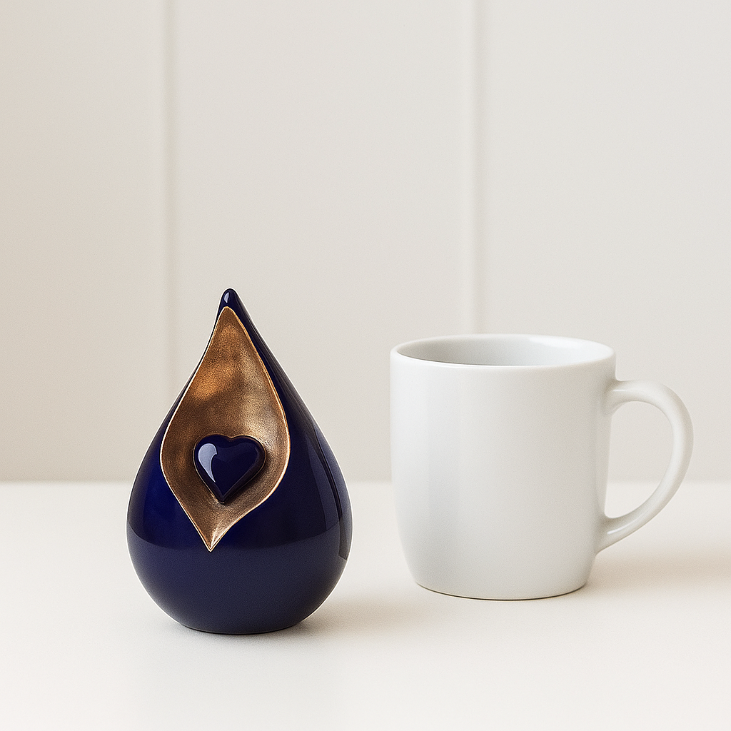 Het kiezen van de juiste maat is belangrijk. Vraag het crematorium waar mogelijk naar het exacte asvolume, of neem contact met ons op — we denken graag met u mee.