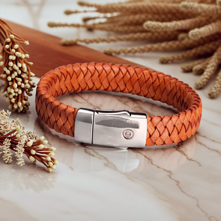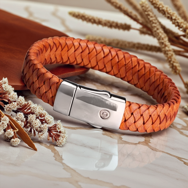 Deze unieke armbanden, ontworpen in samenwerking met ervaren designers, zijn vervaardigd uit hoogwaardig, gevlochten echt leder. Het natuurlijke materiaal vormt zich naar de drager, wordt met de tijd soepeler en ontwikkelt een eigen karakter, waardoor elke armband persoonlijk en uniek is.