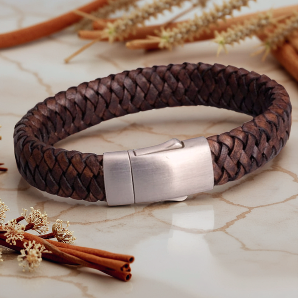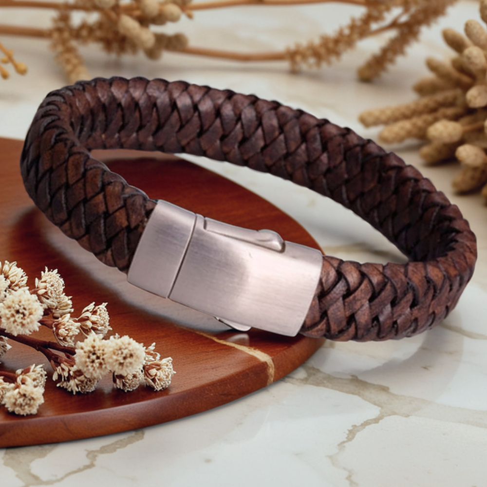Deze unieke armbanden, ontworpen in samenwerking met ervaren designers, zijn vervaardigd uit hoogwaardig, gevlochten echt leder. Het natuurlijke materiaal vormt zich naar de drager, wordt met de tijd soepeler en ontwikkelt een eigen karakter, waardoor elke armband persoonlijk en uniek is.
