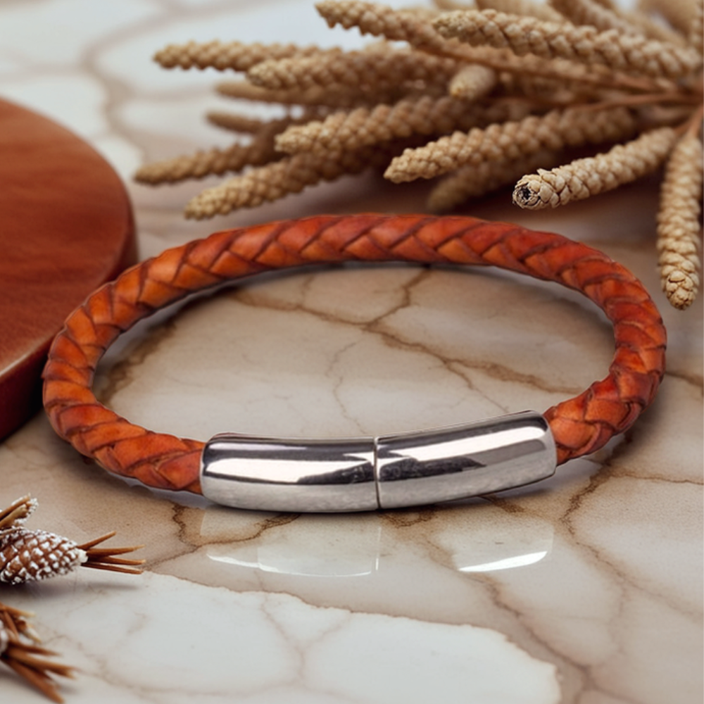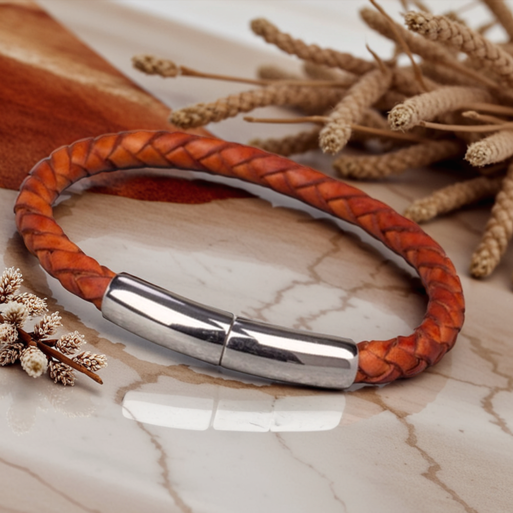Deze unieke armbanden, ontworpen in samenwerking met ervaren designers, zijn vervaardigd uit hoogwaardig, gevlochten echt leder. Het natuurlijke materiaal vormt zich naar de drager, wordt met de tijd soepeler en ontwikkelt een eigen karakter, waardoor elke armband persoonlijk en uniek is.