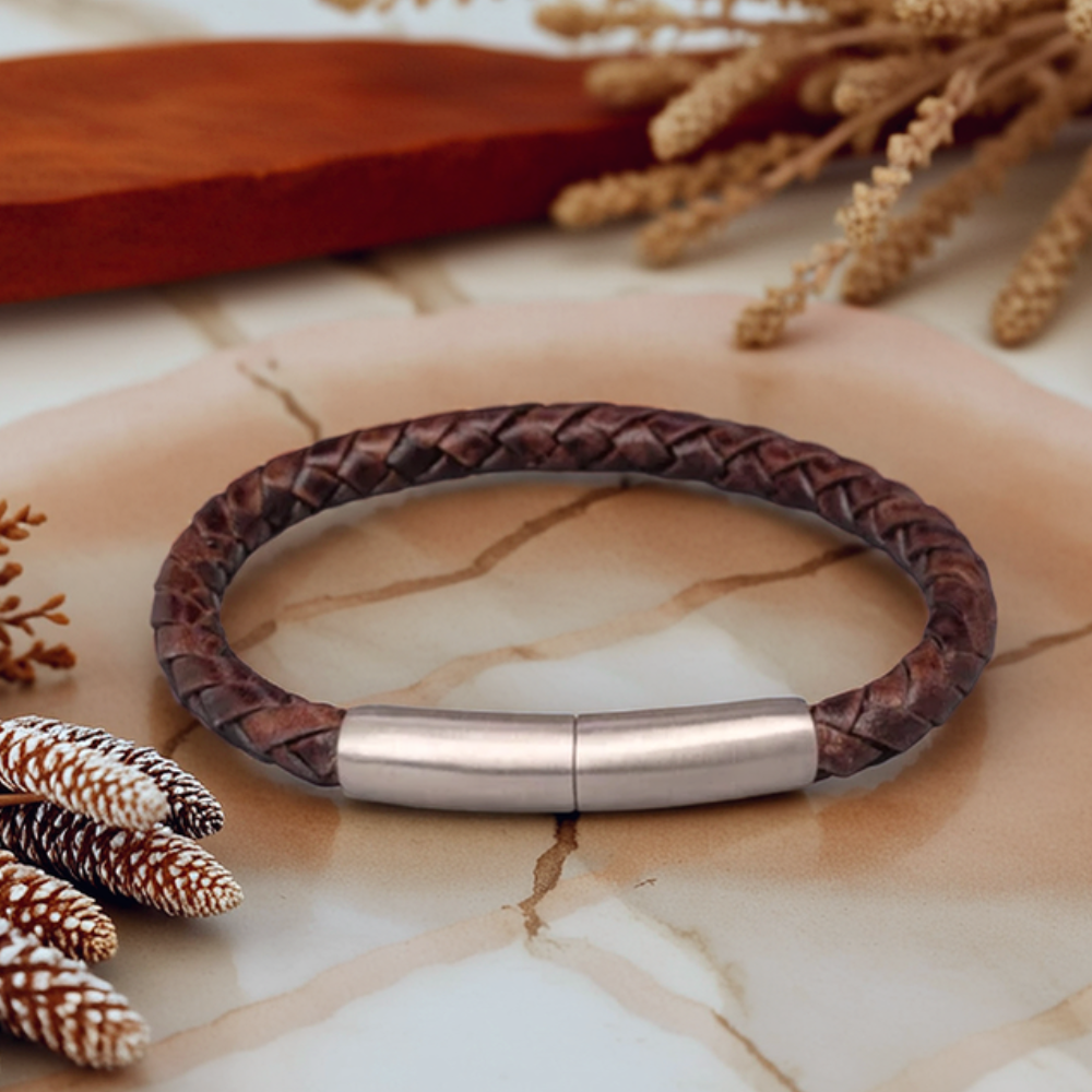 Deze unieke armbanden, ontworpen in samenwerking met ervaren designers, zijn vervaardigd uit hoogwaardig, gevlochten echt leder. Het natuurlijke materiaal vormt zich naar de drager, wordt met de tijd soepeler en ontwikkelt een eigen karakter, waardoor elke armband persoonlijk en uniek is.