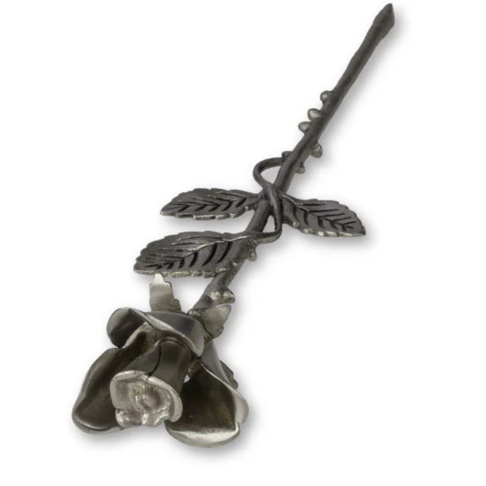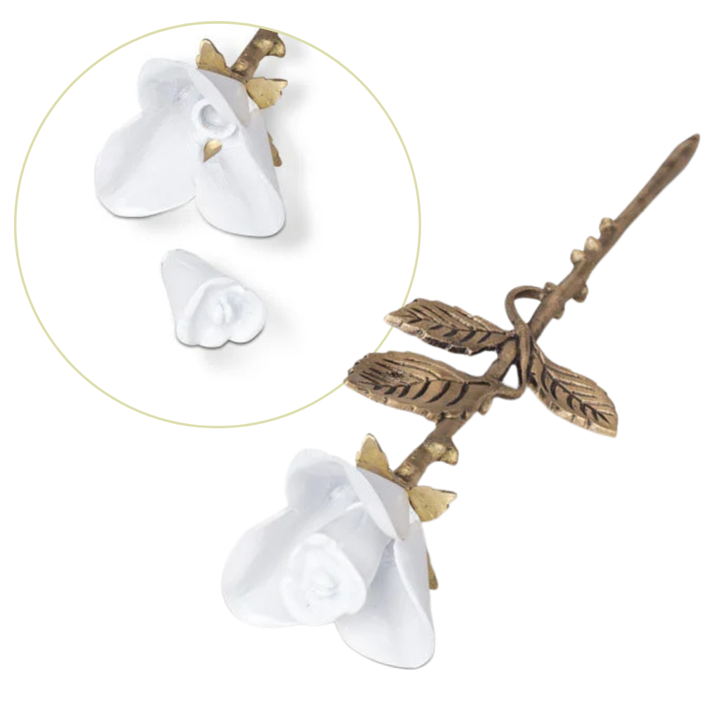 Deze handgemaakte metalen roos bevat een discreet compartiment in de knop, perfect voor een symbolische hoeveelheid as. Eenvoudig zelf te vullen en met zorg ontworpen om een blijvende herinnering te koesteren.