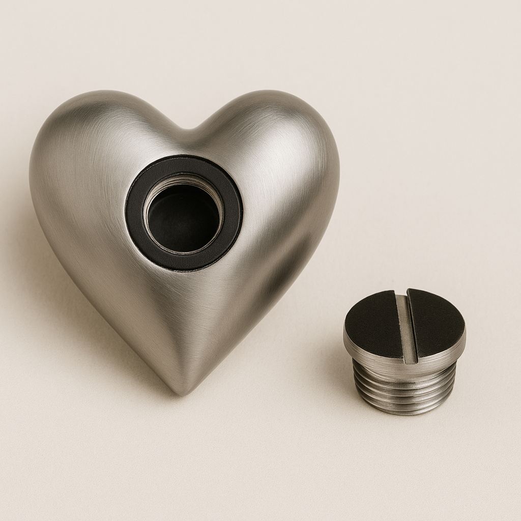 HUH 101 Metaal Keepsake Hart is ontworpen als een intiem en symbolisch gedenkobject. Het hart staat voor liefde, verbondenheid en blijvende herinneringen. De zachte, afgeronde vorm ligt prettig in de hand en biedt troost op momenten dat je behoefte hebt aan nabijheid.