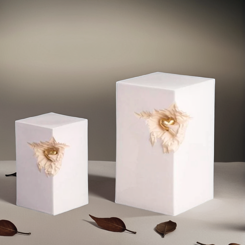 Keramiek is een veel gebruikte materiaalsoort om urnen mee te vervaardigen. Speciaal geselecteerde ingrediënten worden gemixt tot een keramische werkbare massa. Met deze klei geven de kunstenaars vorm aan de urn, welke vervolgens bedekt wordt met verschillende kleuren emaille. Het eindresultaat is een uniek product, voorzien van een kleurrijk karakter.