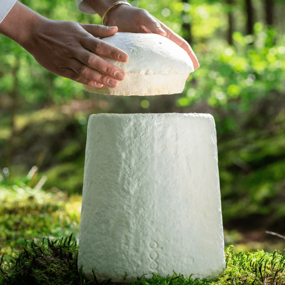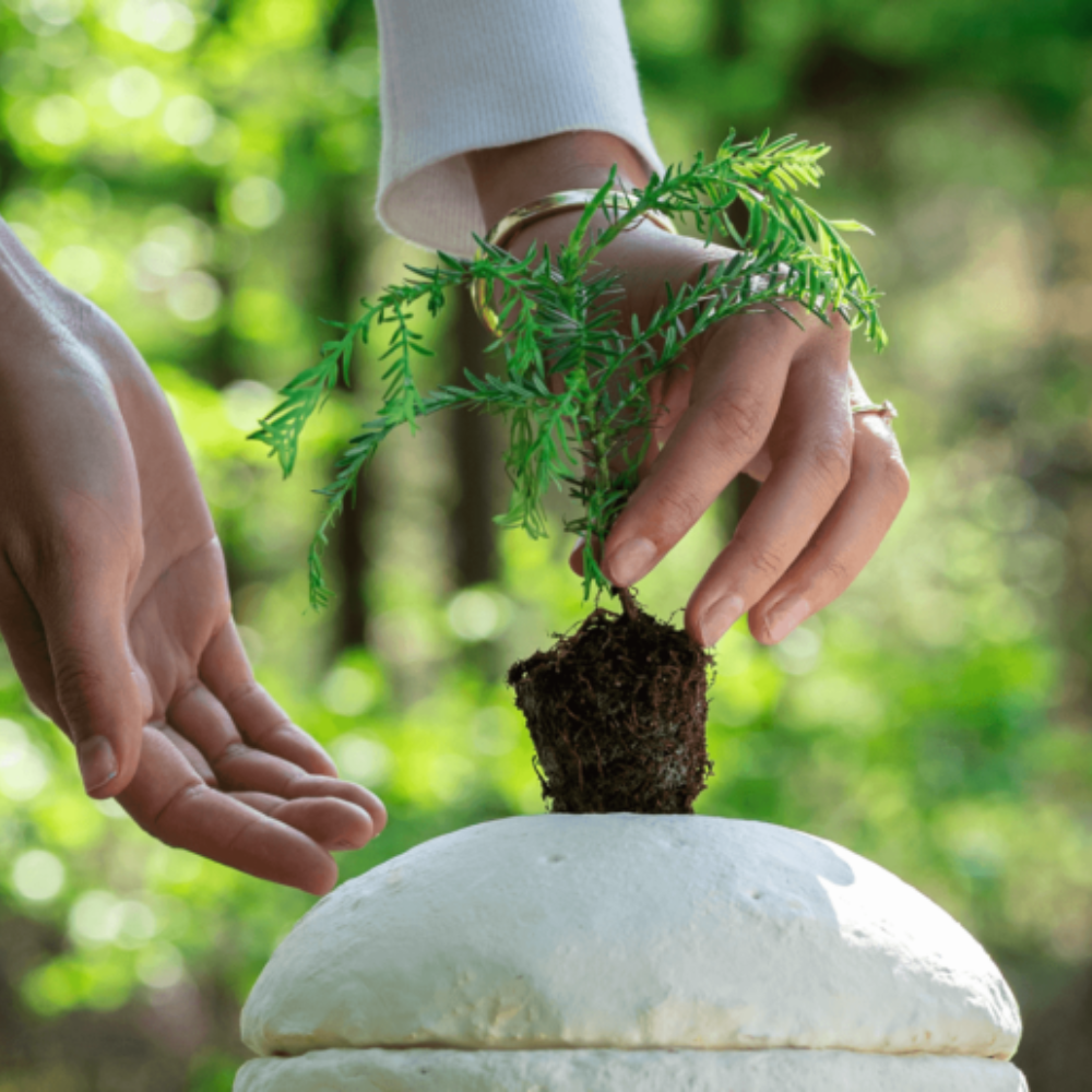 Je kunt de paddenstoel-urne met of zonder plant begraven, zodat er een mooie boom ter nagedachtenis kan groeien.