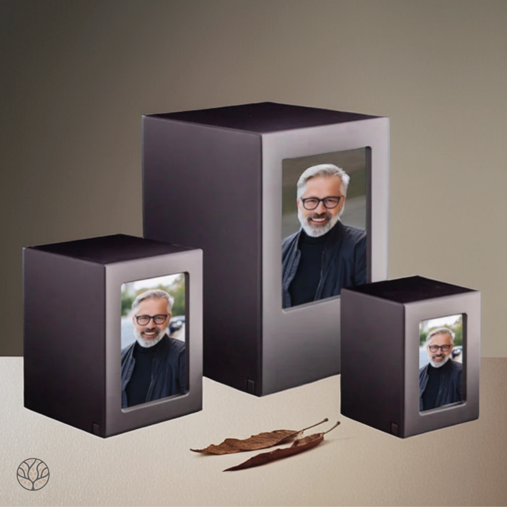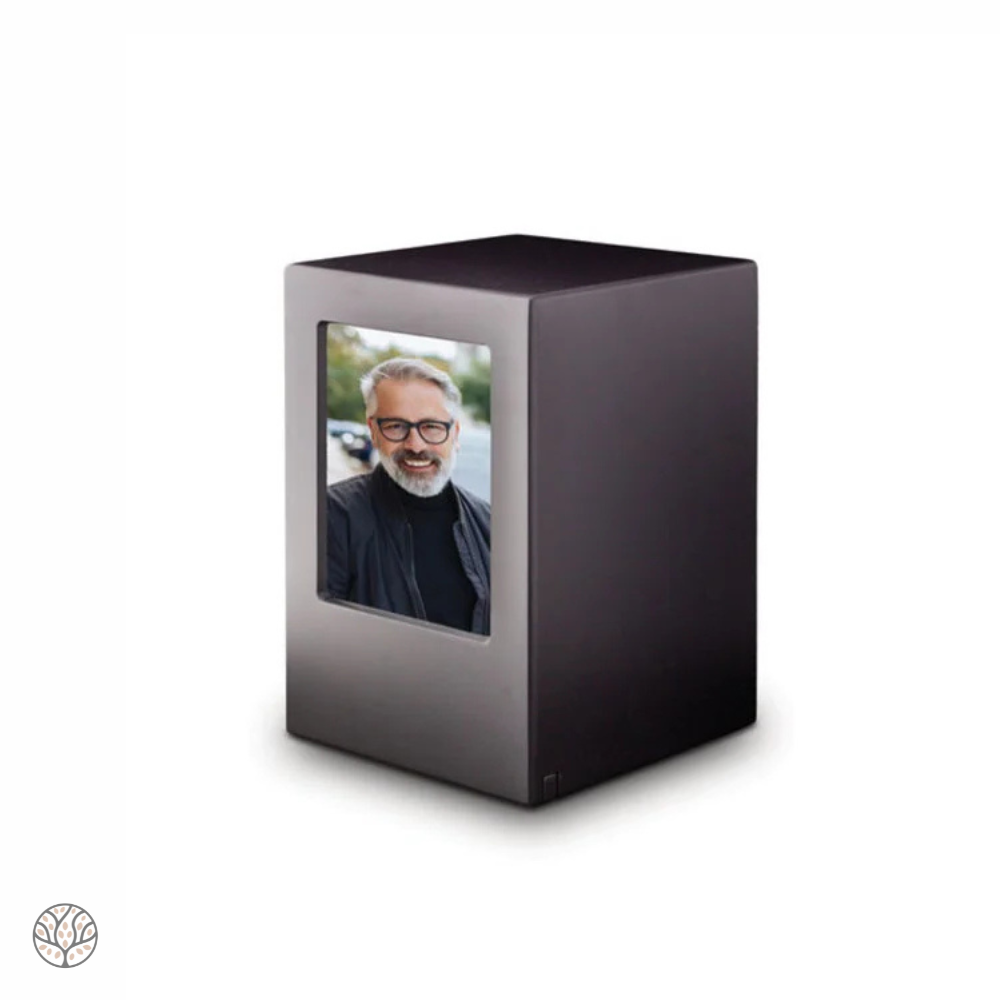 Het verlies van een dierbare is een ingrijpende gebeurtenis, en een waardige herinnering kan troost bieden. Deze handgemaakte houten urn heeft een strak en eigentijds ontwerp, waarbij subtiele details zorgen voor een verfijnde uitstraling. Wat deze urn extra bijzonder maakt, is de mogelijkheid om een foto van uw geliefde te plaatsen, waardoor het een persoonlijk en uniek gedenkobject wordt. De urn is eenvoudig te vullen via de onderzijde.