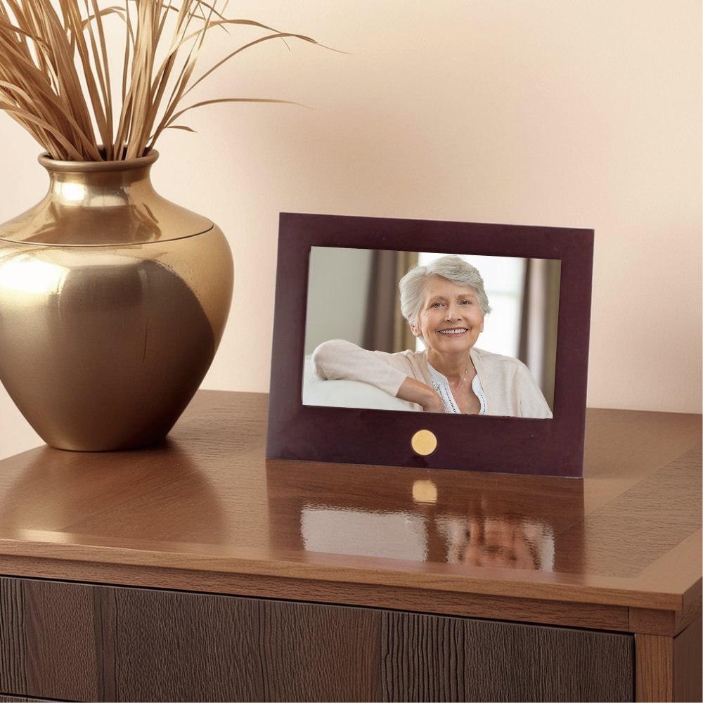Wat deze urn extra bijzonder maakt, is de mogelijkheid om een foto van uw dierbare te plaatsen. Onder het fotolijstje bevindt zich een messing ashouder, geschikt voor een kleine hoeveelheid as, waardoor herinneringen op een persoonlijke en respectvolle manier bewaard blijven.