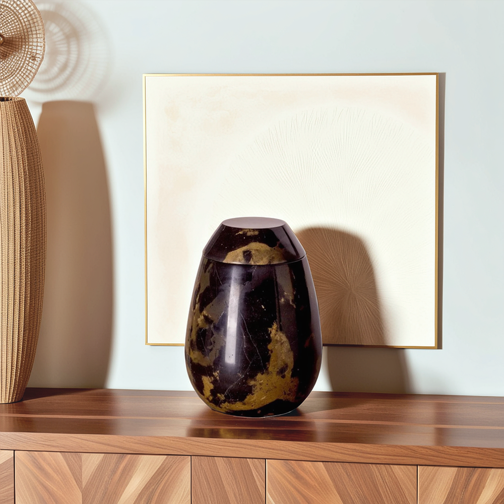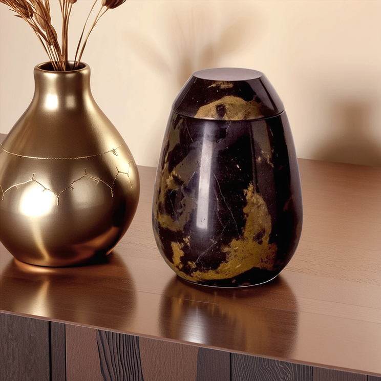 Het hoogwaardige marmer, dat voor deze urnen wordt gebruikt, is afkomstig uit Aziatische steengroeven. Uit deze groeven worden grote blokken natuursteen gekapt en vervolgens met speciale mallen bewerkt om de urn vorm te geven. Doordat elke blok natuursteen zijn eigen kleurschakeringen, kristalstructuur en aderen heeft zal geen enkele urn binnen de collectie hetzelfde zijn. Dit maakt de marmeren urnen tot een volledig natuurproduct, voorzien van een geheel eigen karakter.