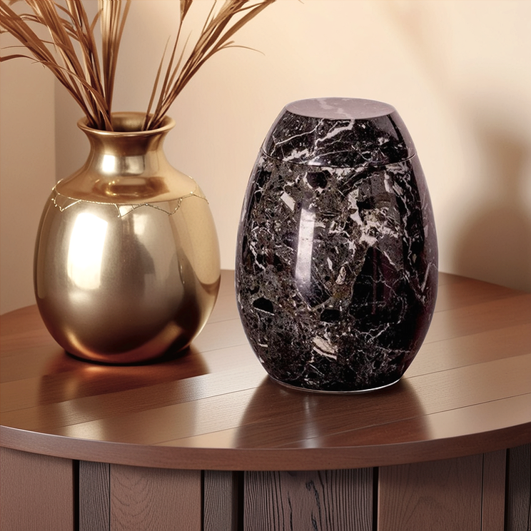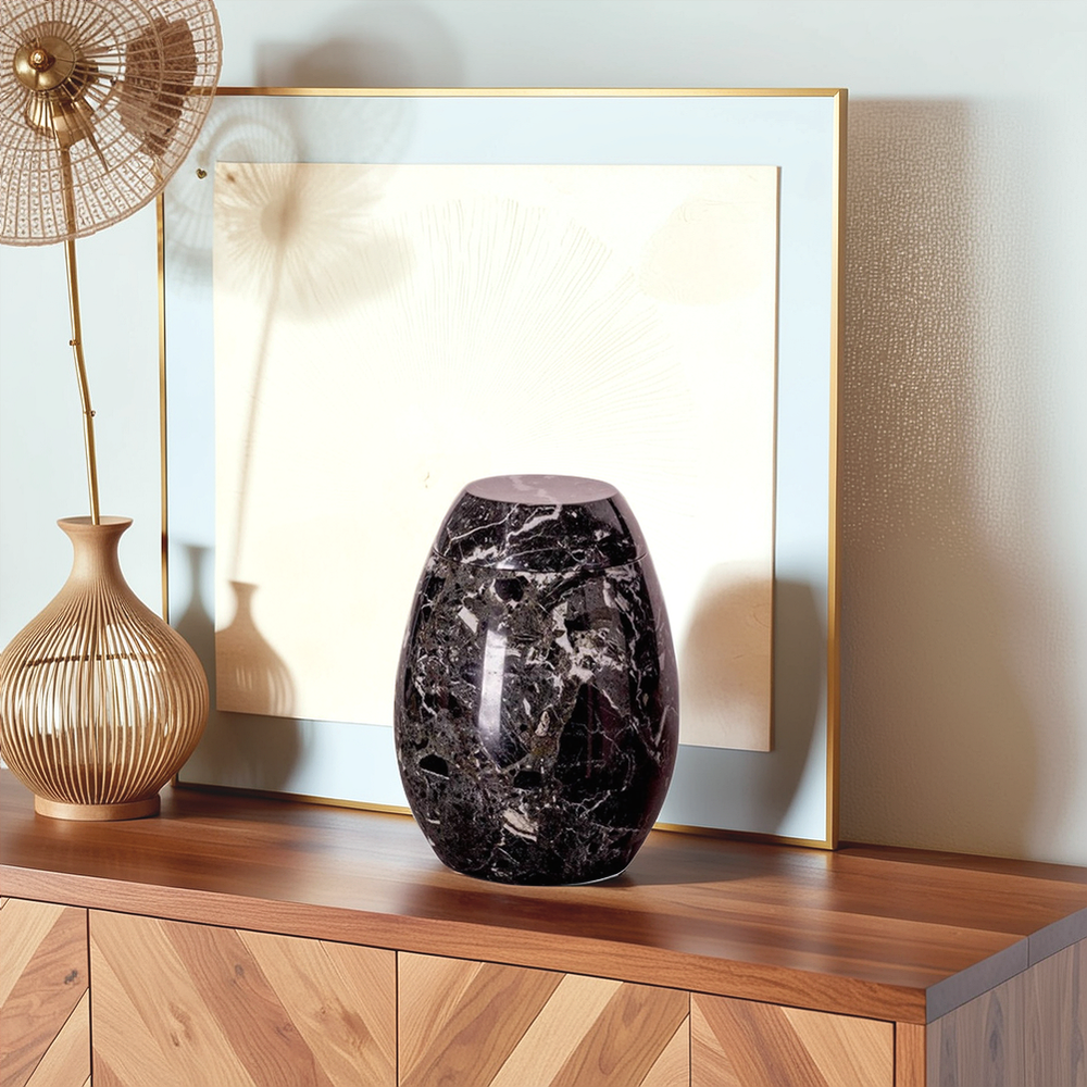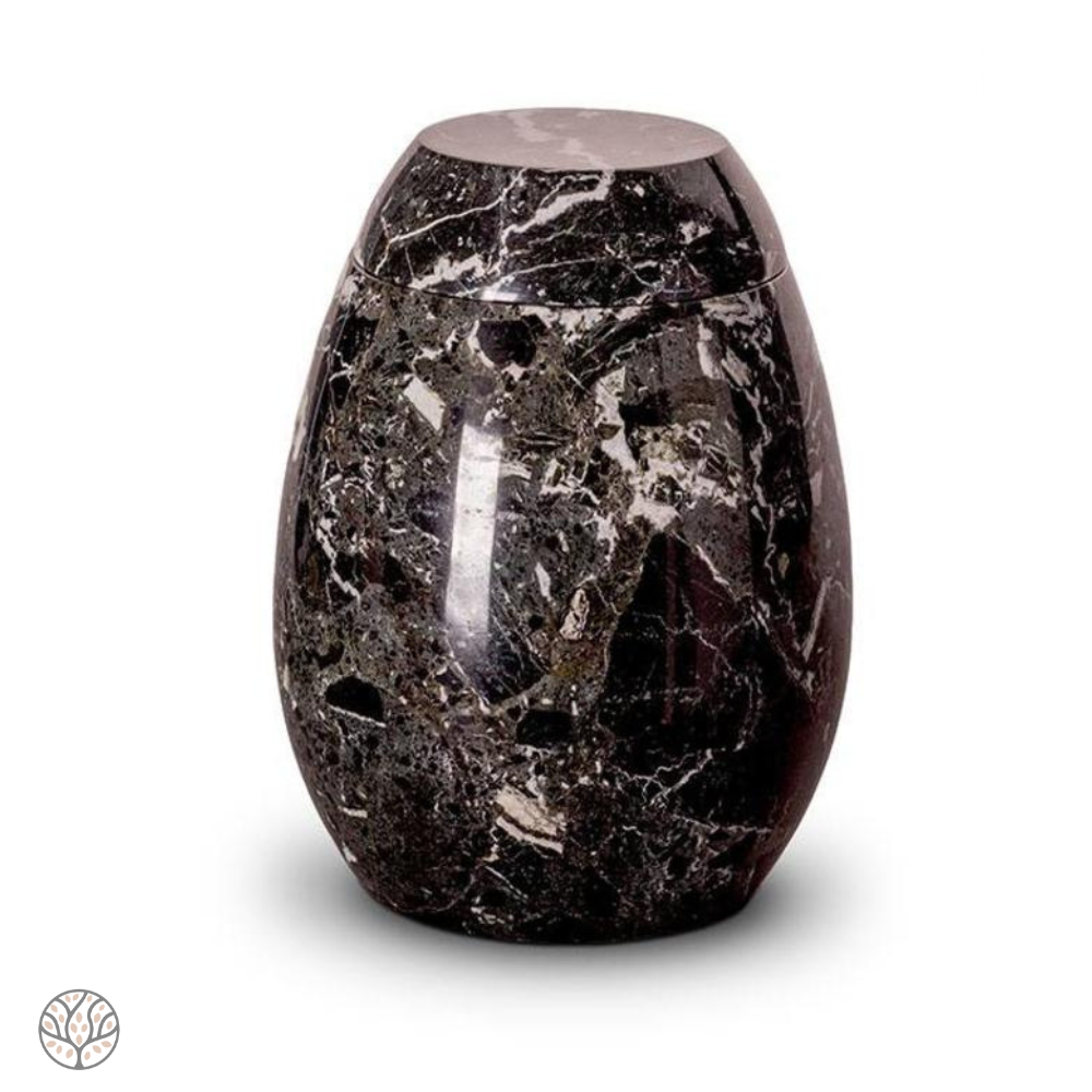Het hoogwaardige marmer, dat voor deze urnen wordt gebruikt, is afkomstig uit Aziatische steengroeven. Uit deze groeven worden grote blokken natuursteen gekapt en vervolgens met speciale mallen bewerkt om de urn vorm te geven. Doordat elke blok natuursteen zijn eigen kleurschakeringen, kristalstructuur en aderen heeft zal geen enkele urn binnen de collectie hetzelfde zijn. Dit maakt de marmeren urnen tot een volledig natuurproduct, voorzien van een geheel eigen karakter.