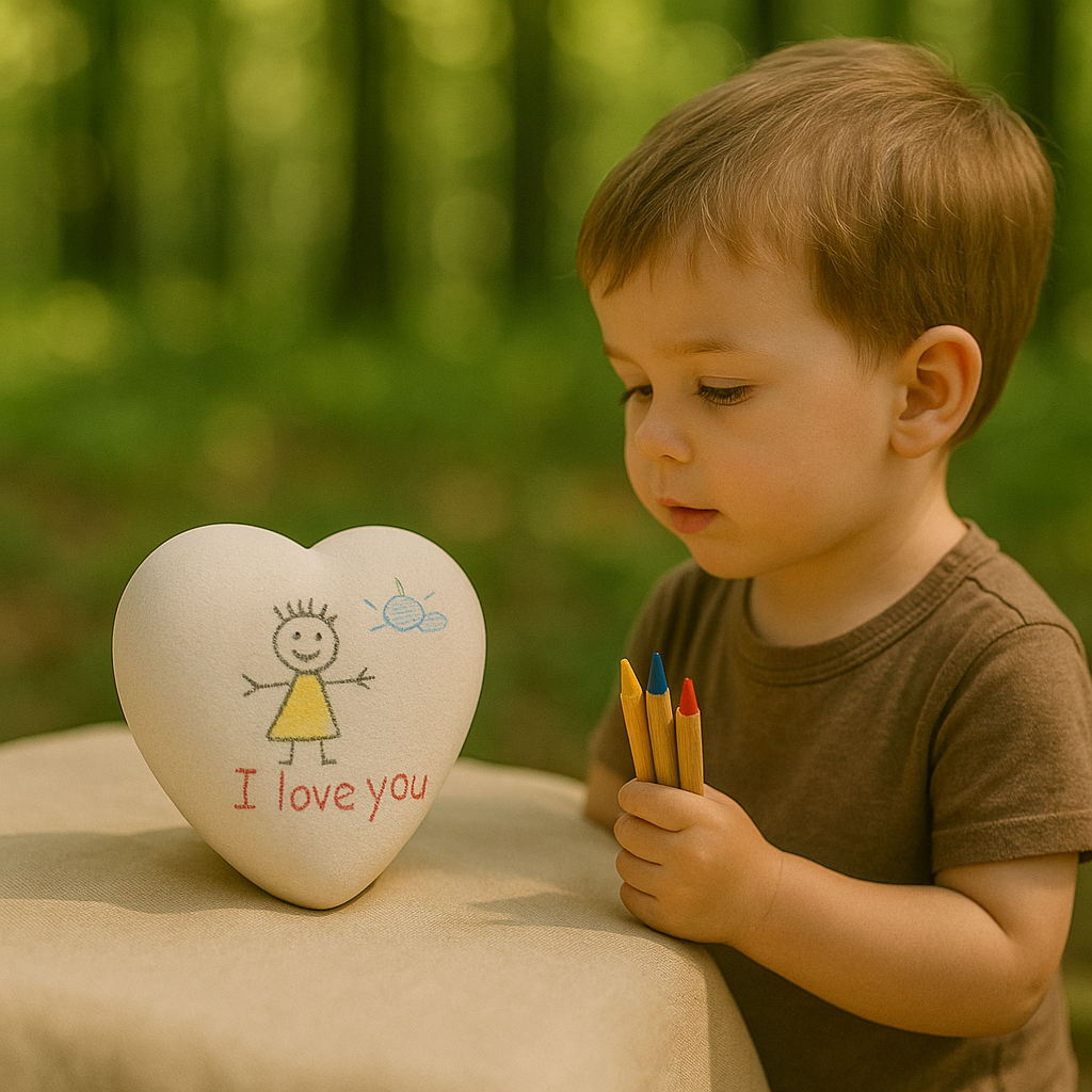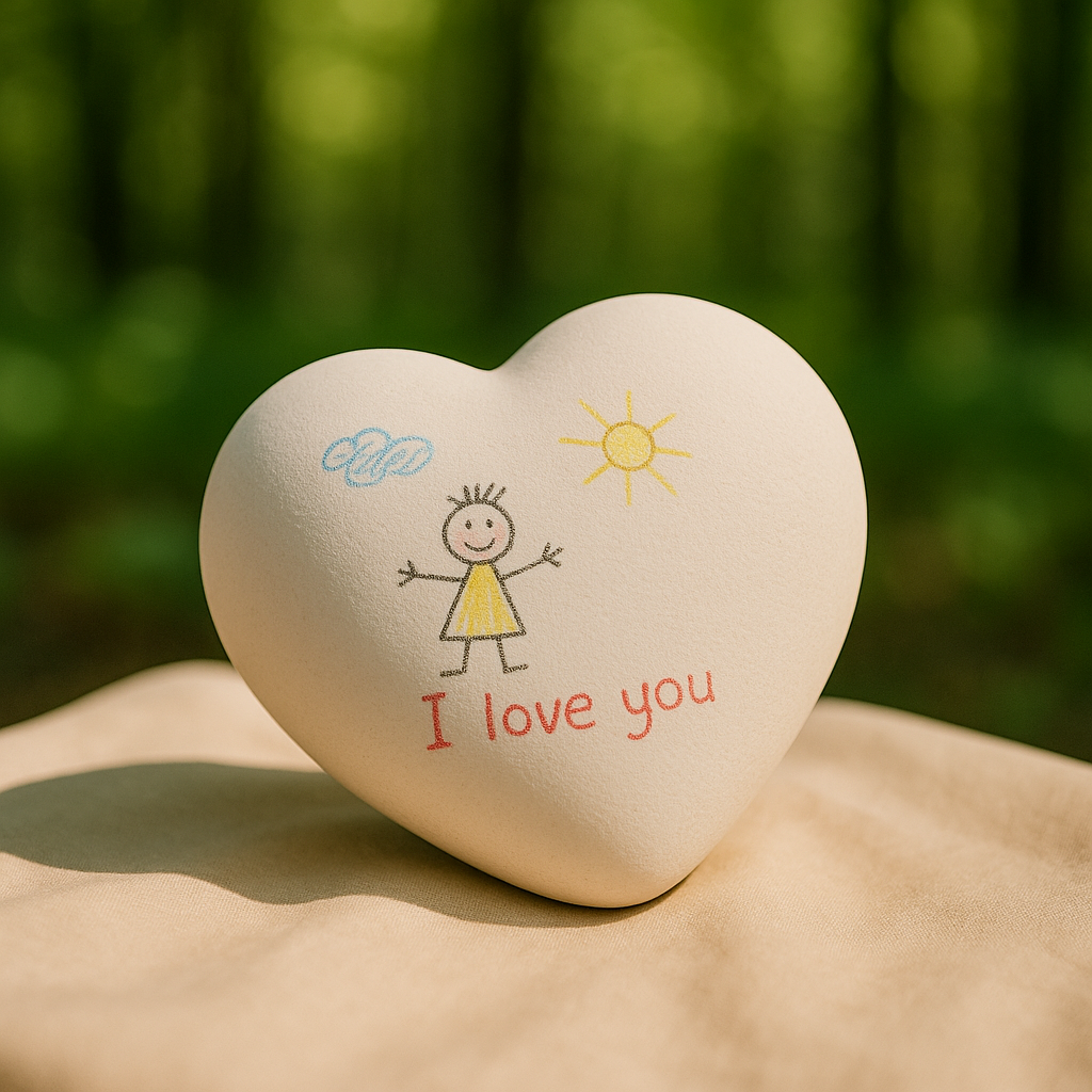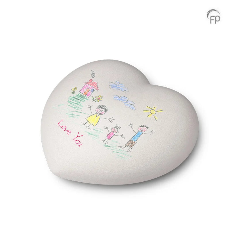 Fantasy hart urn - inclusief potloden Deze hartvormige porseleinen urn biedt kinderen de mogelijkheid om hun liefde en herinneringen op een persoonlijke manier te uiten.